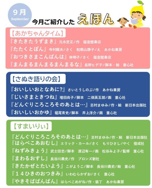 ★9月13日(土)14:00~ さぬき語りの会おはなし会