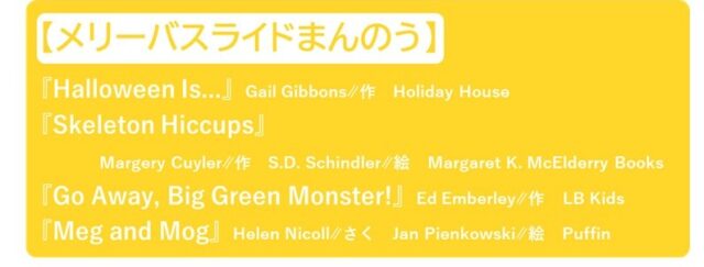今日は、英語の絵本をとおしてハロウィンについて知ることができ、楽しい時間をみんなで過ごすことができましたね。ありがとうございました(^^♪