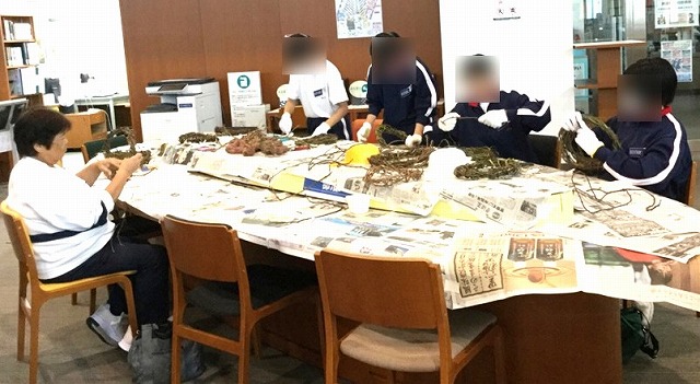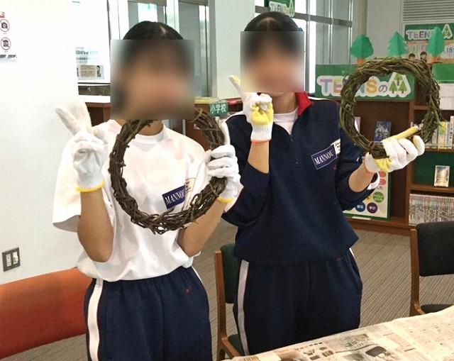 今回は、満濃中学校の生徒さんがボランティア活動で、リースづくりに参加してくださいました。中学生のみなさんが作ったリースの土台を使って、12月7日(日)13:30から、クリスマスリースを作ります。まつぼっくりやどんぐりなどの自然素材をたっぷり使ってオリジナルのクリスマスリースを作りましょう!