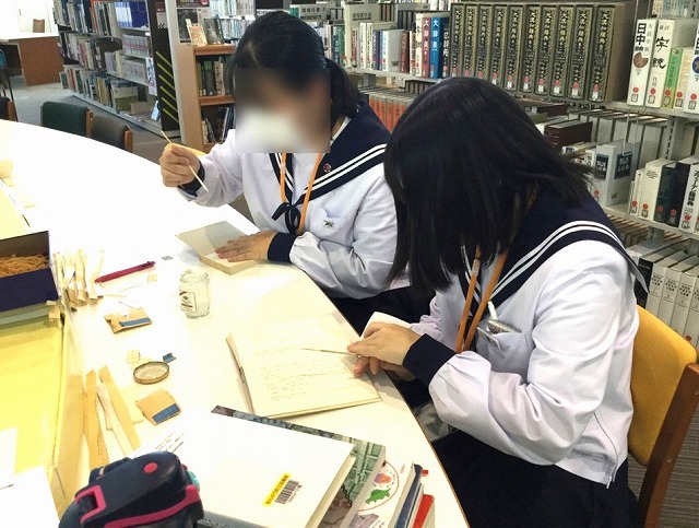 図書館の本は多くの人が利用するので傷んでしまうことも多いです。破れたり、ページが外れるなど修理の必要な本は専用の糊で少しずつ貼り付けていきます。修理する姿は真剣そのもの。きれいにページをつけるのは難しかったですね。