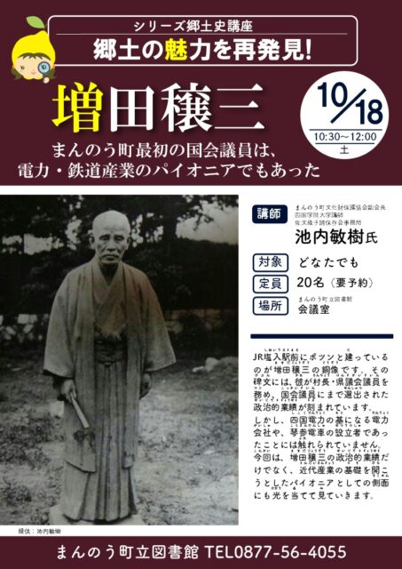 10月18日(土)郷土史講座「増田穣三~まんのう町最初の国会議員は、電力・鉄道産業のパイオニアでもあった~」が開催されました!
