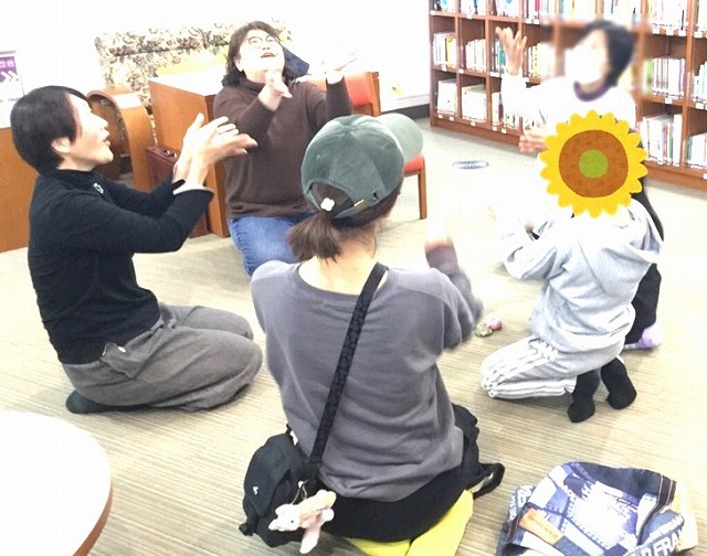 最後は、みんなで輪になって「時計屋さん」のお手玉をしました。